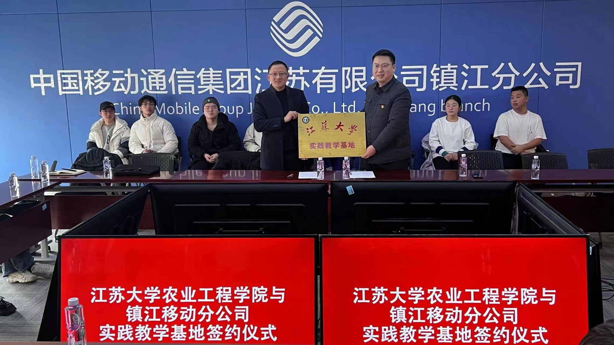 1月11日,性爱直播-夫妻性爱-性视频 党委副书记、副院长周军,农机系主任周脉乐,副主任祝清震等带领农业智能装备工程专业2020级性爱直播 赴中国移动通信集团江苏有限公司镇江分公司开展人才培养专题调研。现场举行了性爱直播-夫妻性爱-性视频 与中国移动镇江分公司实践教学实习基地签约暨揭牌仪式,周军与中国移动镇江分公司经理戴宁共同为实践教学基地揭牌。
